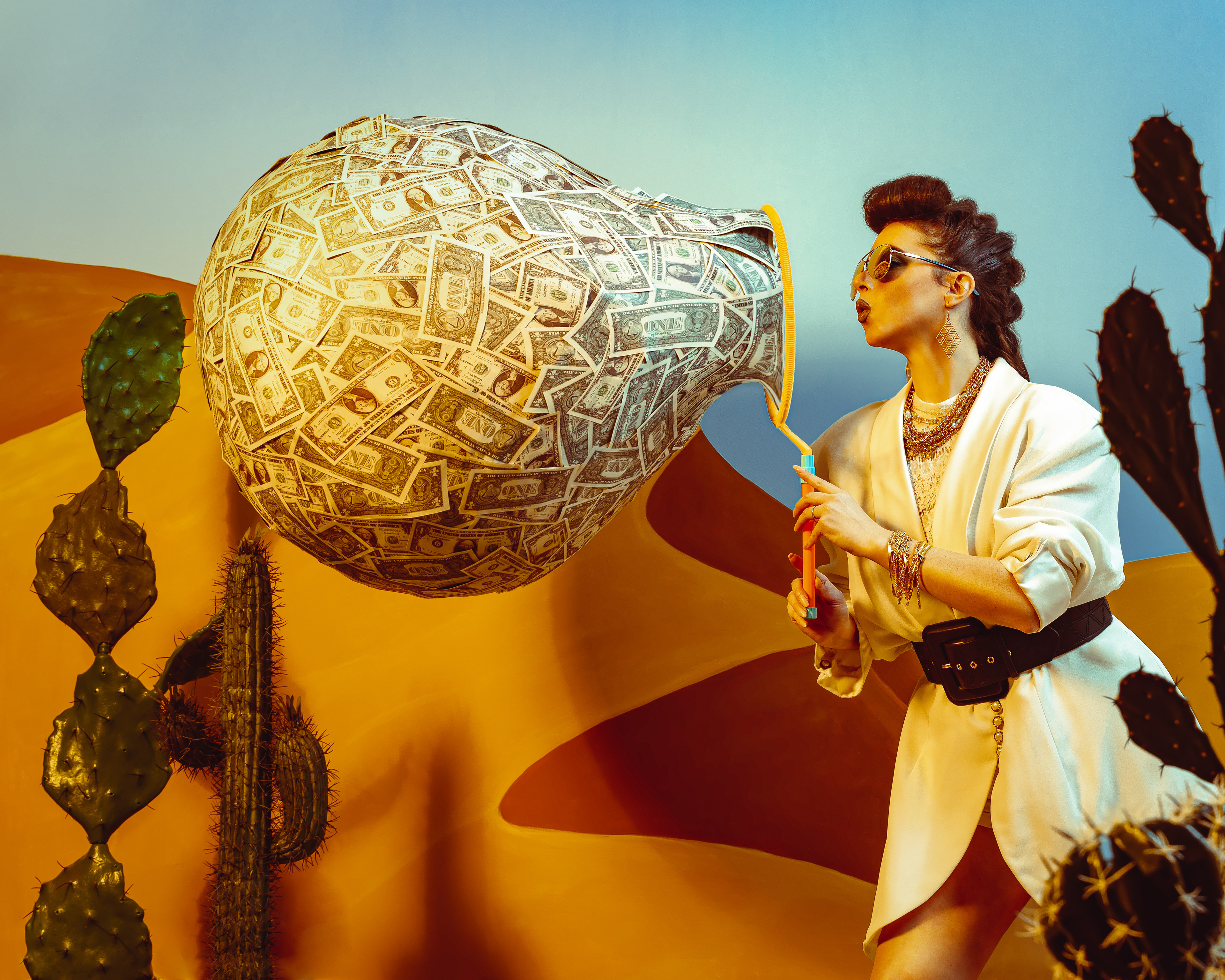 Véronique Duplain is a Montreal-based photographer. Self-thaught, she has explored different spheres of photography before devoting herself to composition work with the Selfie Project, on which she has been working for ten consecutive years. In the context of this project, the artist stages herself as the main subject of different narrative universes each day, for the entire month of February. These daily pictures, exhibited next to one another, form visual diary witnessing Duplain’s personal evolution as an artist. These self-portraits offer more than a simple entry to the artist’s personal universe : they can be read, notably, under the perspective of social criticism. Published daily on Instagram, these photographies address the very actual themes of internet voyeurism and of the media construction of public personalities. Duplain, despite the possibilities offered by the digital, accords importance to manual work and craft manipulation in her artistic practice by setting up physically each element composing the photographies. The artist, by corporeally modifying a space that seems realized by digital montage and by embodying a fictive character, plays with the boundaries of the real and the illusory.